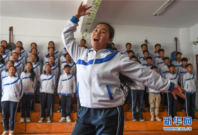 鹽井中學(xué)的學(xué)生們?cè)谏弦魳氛n(6月5日攝)。年輕的藏族女教師坐在鋼琴前,手指靈動(dòng)地彈奏樂曲,兩名學(xué)生拉起弦子伴奏,三十多名學(xué)生站成四排,齊聲合唱。學(xué)校籃球場(chǎng)上數(shù)名身材高大的學(xué)生,正在體育老師的組織下進(jìn)行激烈的分組對(duì)抗,不一會(huì)兒,學(xué)生們個(gè)個(gè)汗流浹背。綜合樓三樓的化學(xué)實(shí)驗(yàn)室內(nèi),身穿白色大褂的學(xué)生,分成若干小組,正在做簡單的化學(xué)實(shí)驗(yàn)。這一幕幕,同時(shí)出現(xiàn)在西藏昌都市芒康縣鹽井中學(xué)。新華社記者晉美多吉攝