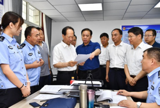 7月3日,石泰峰來(lái)到吳忠市利通區(qū)掃黑除惡辦案中心,調(diào)研督辦中央掃黑除惡督導(dǎo)組反饋問題整改落實(shí)工作。