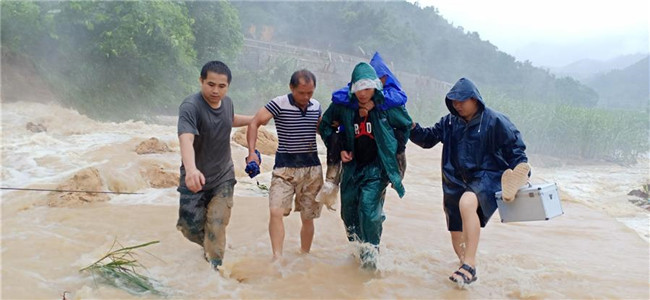 從山上奔流而下的山洪像一條條瀑布,不斷沖刷著進村道路,淤泥和積水最深處已到人的腰部。“當時路上水流湍急,淤泥也深,但我們沒想那么多,轉移受傷群眾要緊。”覃國富說。