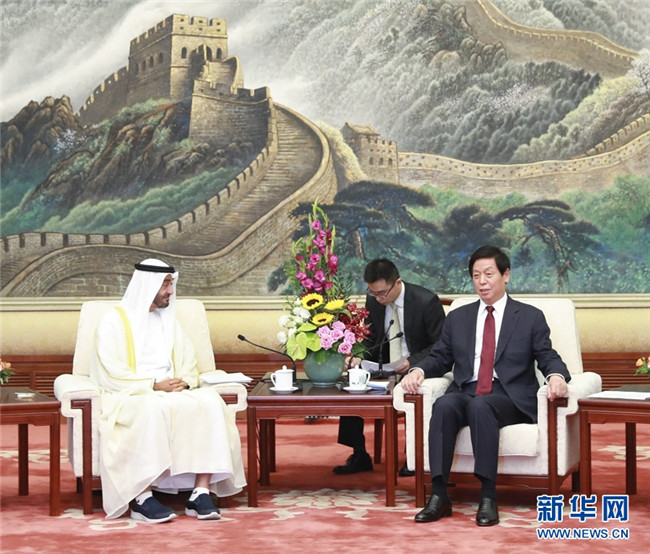全國人大常委會(huì)委員長栗戰(zhàn)書22日在人民大會(huì)堂會(huì)見阿聯(lián)酋阿布扎比王儲(chǔ)穆罕默德。