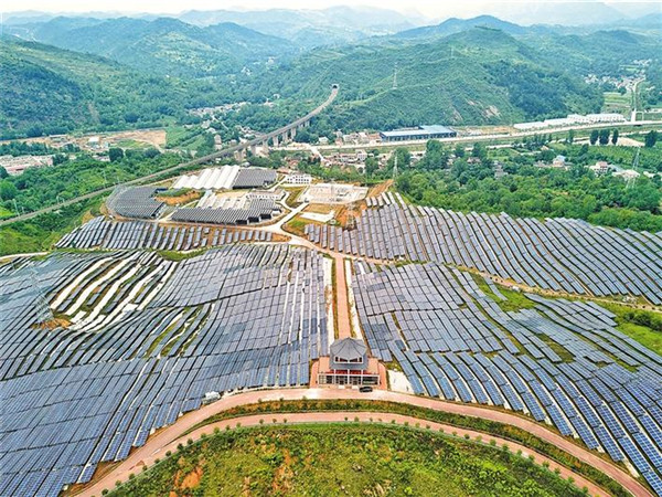 航拍商州區(qū)龍山光伏電站(6月30日)。該電站2018年9月建成,10月全部并網(wǎng)發(fā)電,年發(fā)電量3550萬度。龍山光伏電站的建成,可帶動(dòng)全區(qū)1.8萬戶貧困戶戶均年增收3000元左右,成為新能源示范區(qū)和脫貧產(chǎn)業(yè)基地。(記者 田若楠攝)