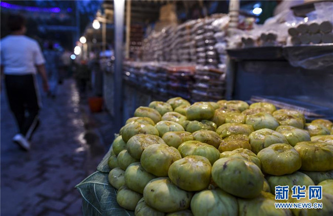 在新疆喀什市歐爾達路的夜市上,一家攤位前擺放著待出售的無花果(8月12日攝)。新華社記者 王菲 攝