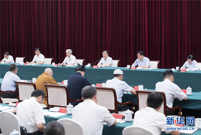 9月9日至10日,中共中央政治局常委、全國政協(xié)主席汪洋在江西調(diào)研宗教工作。這是9月10日,汪洋在南昌主持召開宗教工作座談會并講話。新華社記者 王曄 攝