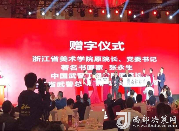 浙江省美術(shù)學(xué)院原院長、黨委書記、著名書畫家——張永生,浙江省武警總隊(duì)原總隊(duì)長何虎少將現(xiàn)場贈(zèng)字,西鳳股份公司副董事長、總經(jīng)理賈智勇上臺(tái)接受贈(zèng)字。
