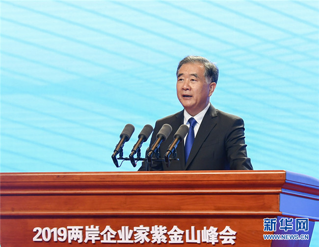 2019兩岸企業(yè)家紫金山峰會(huì)4日在江蘇南京舉行。中共中央政治局常委、全國(guó)政協(xié)主席汪洋出席并發(fā)表演講。