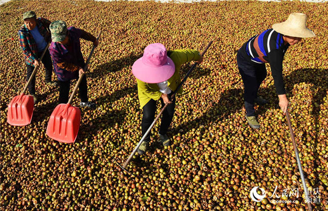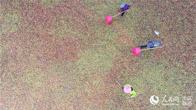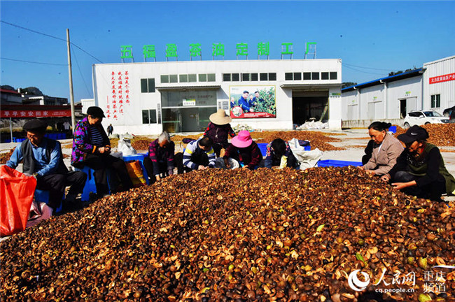 1月3日,在重慶市酉陽土家族苗族自治縣五福鎮(zhèn)的五福盈茶油定制工廠,工人們正忙著晾曬油茶籽,整個廠區(qū)一片繁忙景象。近年來,該縣采取“生態(tài)+產(chǎn)業(yè)”模式在荒山上開發(fā)的上萬畝油茶已陸續(xù)豐收,油茶產(chǎn)業(yè)成為當(dāng)?shù)剞r(nóng)民脫貧致富產(chǎn)業(yè)之一。
