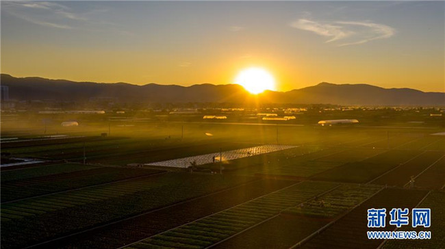 這是云南省玉溪市通??h的田園風(fēng)光(11月23日無(wú)人機(jī)拍攝)。初冬時(shí)節(jié),云南省玉溪市通??h風(fēng)景秀麗,山巒、湖水與農(nóng)田組成了一幅美麗的田園詩(shī)畫(huà)卷。新華社記者胡超攝