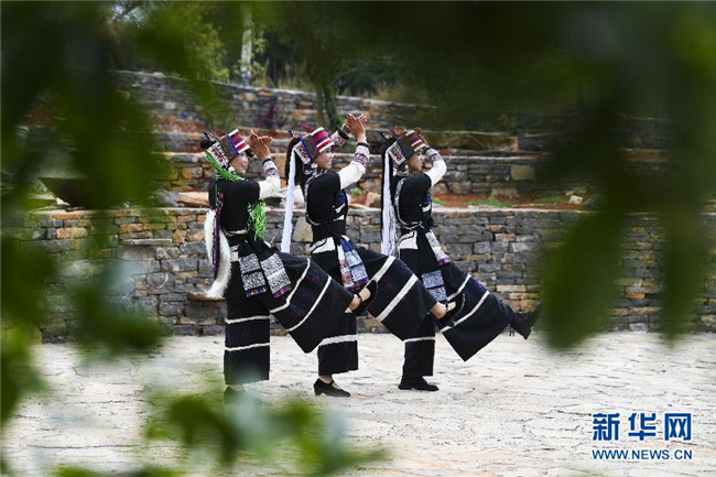 11月28日,大糯黑村村民在進(jìn)行彝族大三弦舞表演。新華社記者周華攝