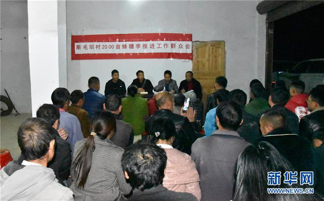 11月15日夜,貴州省銅仁市沿河土家族自治縣后坪鄉(xiāng)斯毛壩村,下沉一線的縣、鄉(xiāng)干部及村干部組織村民商討產(chǎn)業(yè)結構調整。新華社記者 段羨菊 攝