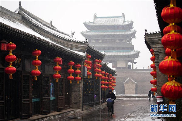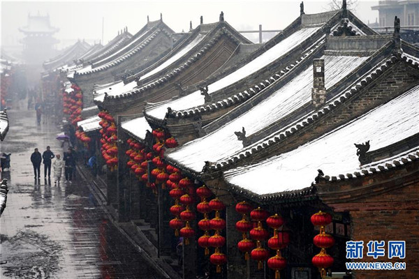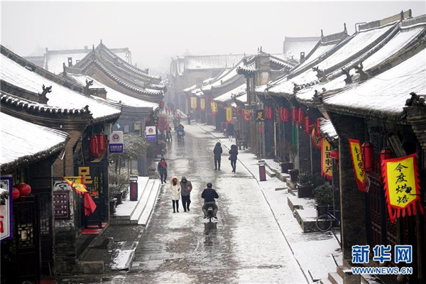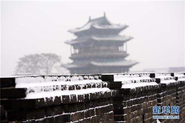 當(dāng)日,山西省平遙縣迎來(lái)降雪,雪中的平遙古城銀裝素裹,美景如畫。平遙古城是目前中國(guó)保存最完整的古代縣級(jí)城池之一,1997年被列入世界文化遺產(chǎn)名錄。新華社記者詹彥攝