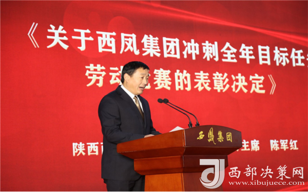 西鳳集團(tuán)公司勞動(dòng)競賽領(lǐng)導(dǎo)小組辦公室主任、工會(huì)主席陳軍紅宣讀《關(guān)于西鳳集團(tuán)沖刺全年目標(biāo)任務(wù)勞動(dòng)競賽的表彰決定》