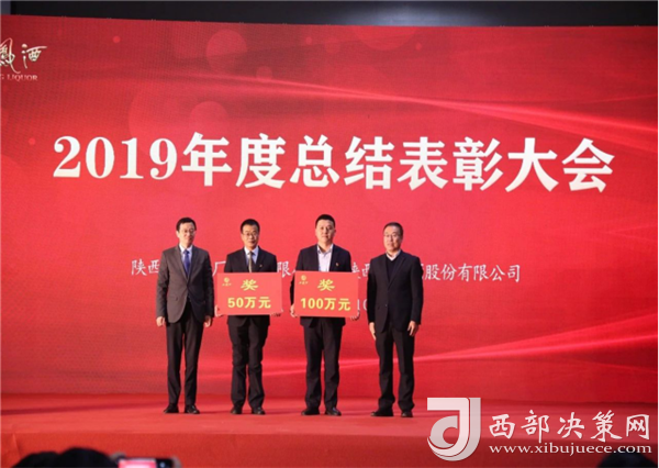 西鳳集團(tuán)公司黨委書記、董事長,股份公司董事長張正、副董事長、總經(jīng)理賈智勇為企業(yè)標(biāo)兵頒發(fā)證書