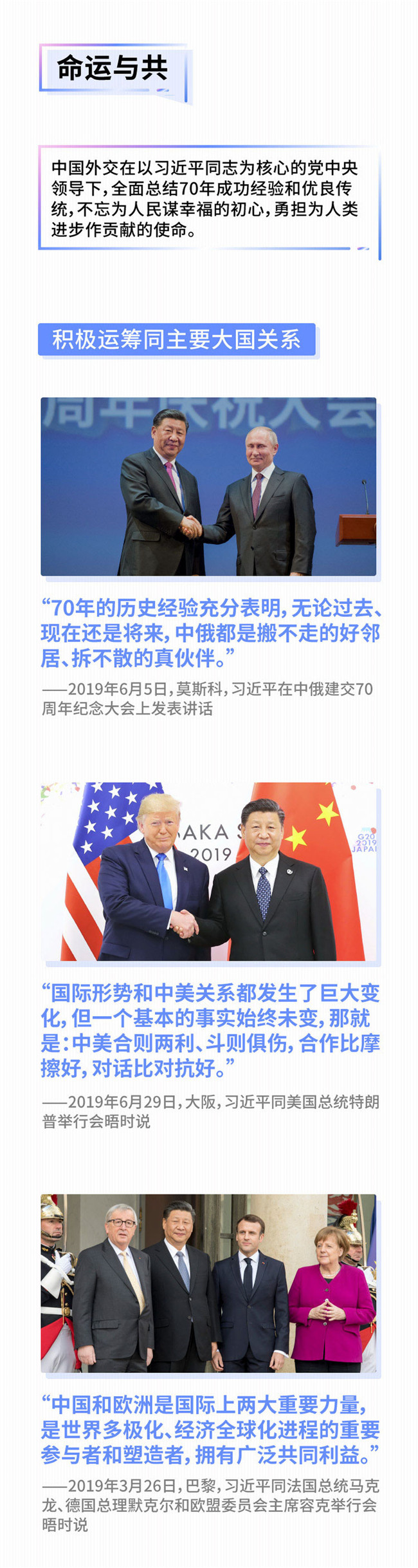 從歐洲亮麗開場(chǎng),在歐洲圓滿收官。2019年,習(xí)近平主席先后到訪意大利、摩納哥、法國(guó)、希臘4國(guó),迎接德、法、意等歐洲主要大國(guó)領(lǐng)導(dǎo)人來訪,中國(guó)-中東歐國(guó)家合作實(shí)現(xiàn)首次擴(kuò)員,中歐地理標(biāo)志協(xié)定談判按期完成……世界兩大文明、兩大力量之間的交往積極活躍而富有成果。