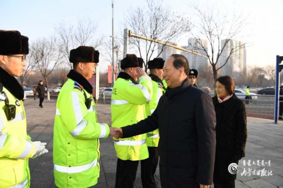 1月24日,自治區(qū)黨委書記、人大常委會(huì)主任石泰峰,自治區(qū)黨委副書記、自治區(qū)主席布小林在呼和浩特看望慰問春節(jié)期間堅(jiān)守一線崗位的執(zhí)勤交警。 內(nèi)蒙古日報(bào)社融媒體記者 袁永紅 攝