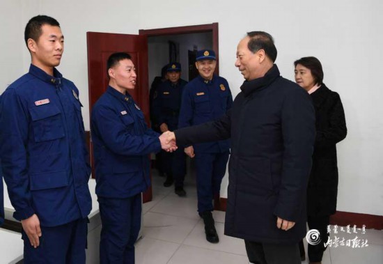 在賽罕區(qū)消防救援大隊(duì)二中隊(duì),石泰峰、布小林來到消防救援裝備間、消防員宿舍,認(rèn)真檢查消防救援裝備,與執(zhí)勤隊(duì)員親切握手交流,了解春節(jié)期間執(zhí)勤備勤情況。他說,春節(jié)期間人流物流密集,居民用火、用電多,是火災(zāi)易發(fā)多發(fā)期,一定要倍加注意消防安全,格外加強(qiáng)應(yīng)急值守,枕戈待旦、快速反應(yīng),全力做好消防安全保衛(wèi)各項(xiàng)工作,確保春節(jié)期間萬無一失,當(dāng)好“人民群眾安全守護(hù)神”。