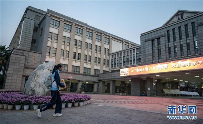 3月23日,昆明市第一中學(xué)高三年級(jí)的學(xué)生進(jìn)入校園準(zhǔn)備上課。新華社記者 江文耀 攝