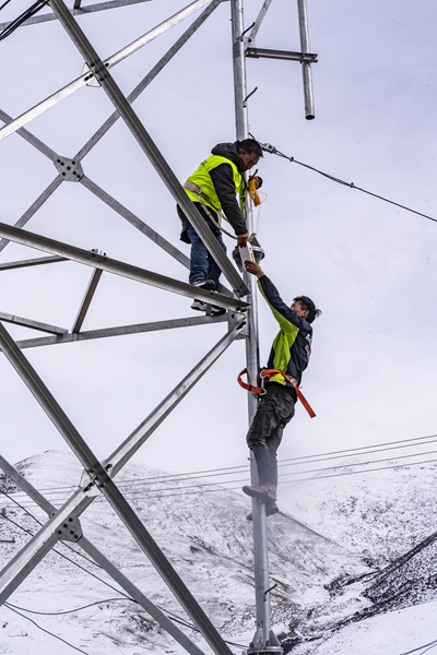 在距離當(dāng)雄縣城約80公里左右的烏瑪塘鄉(xiāng)巴嘎村,中國電信集團(tuán)拉薩分公司當(dāng)雄電信局的技術(shù)人員在調(diào)試基站設(shè)備(3月6日攝)。新華社記者 孫非/攝