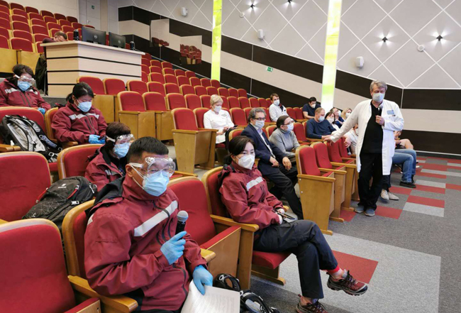 7天時間專家們已經(jīng)在當(dāng)?shù)氐?家醫(yī)院與醫(yī)學(xué)界同仁分享了經(jīng)驗(yàn),還通過視頻連線向在俄華僑華人、中資企業(yè)和留學(xué)生代表講解新冠防控科普知識,解答相關(guān)問題,并交接了防疫物資。