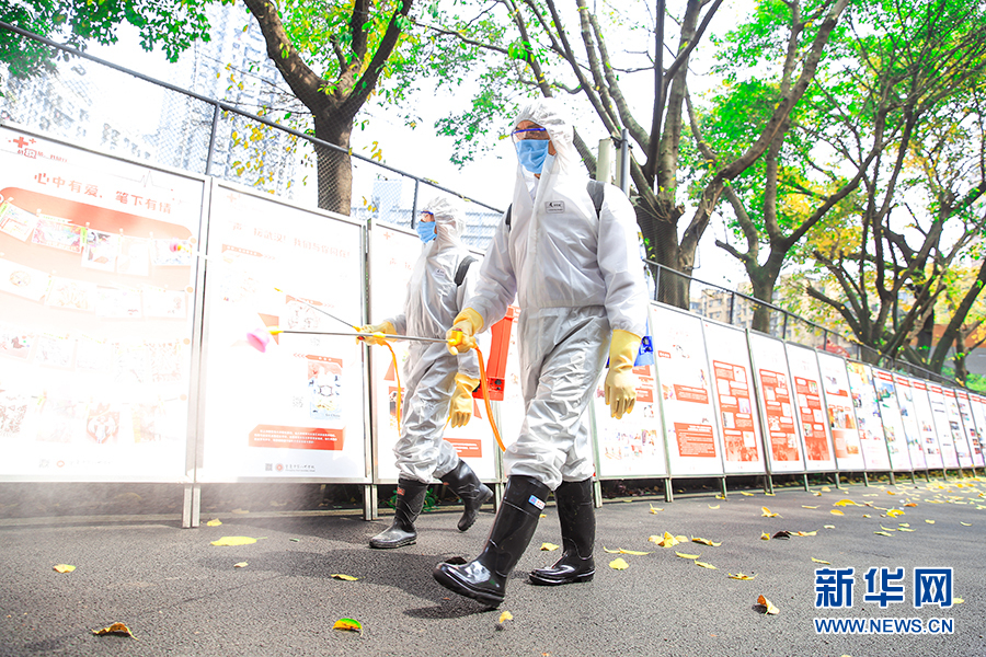 重慶市第十一中學,正式復學復課后,學校將每天早晚各一次定時開展消毒工作——室外場地采用噴灑消毒液方式進行徹底消毒,學生寢室設(shè)施及體育器材將采取擦拭消毒液、晾曬,紫外線消毒等方式進行消毒。新華網(wǎng) 彭博攝