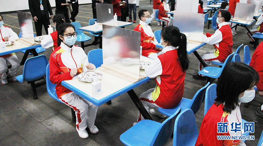 為了防止在就餐時交叉感染,重慶許多學校都對食堂設(shè)施進行了相應(yīng)改造——譬如在就餐位上安裝隔板,以做到錯時錯峰分散用餐。圖為兩江育才中學演練食堂就餐環(huán)節(jié)。新華網(wǎng)發(fā)