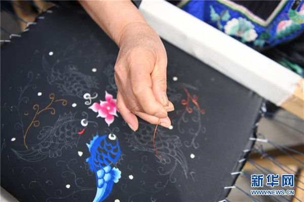 吳美金在十八洞村苗繡特產(chǎn)農(nóng)民專業(yè)合作社繡苗繡(4月24日攝)。1967年出生的吳美金,1992年嫁入飛蟲(chóng)村(現(xiàn)十八洞村飛蟲(chóng)寨)時(shí),只有爛泥路的飛蟲(chóng)村不僅田土少,掙錢活路也少,生活十分困難。2014年,吳美金加入了十八洞村苗繡特產(chǎn)農(nóng)民專業(yè)合作社,從小就會(huì)的苗繡傳統(tǒng)手藝如今成了家庭增收的法寶,不僅在家門口就把錢掙了,同時(shí)還能照顧年幼的孫子孫女。“現(xiàn)在的日子,比年輕的時(shí)候好多了。”吳美金說(shuō)。新華社記者薛宇舸攝