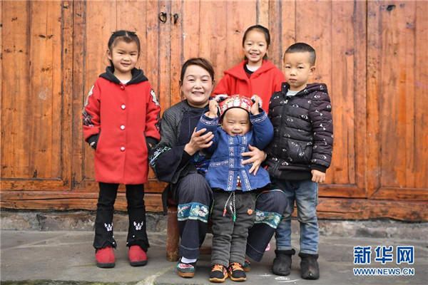 這是4月24日拍攝的吳美金(左二)和她孫子孫女的合影。1967年出生的吳美金,1992年嫁入飛蟲(chóng)村(現(xiàn)十八洞村飛蟲(chóng)寨)時(shí),只有爛泥路的飛蟲(chóng)村不僅田土少,掙錢活路也少,生活十分困難。2014年,吳美金加入了十八洞村苗繡特產(chǎn)農(nóng)民專業(yè)合作社,從小就會(huì)的苗繡傳統(tǒng)手藝如今成了家庭增收的法寶,不僅在家門口就把錢掙了,同時(shí)還能照顧年幼的孫子孫女。“現(xiàn)在的日子,比年輕的時(shí)候好多了。”吳美金說(shuō)。新華社記者薛宇舸攝