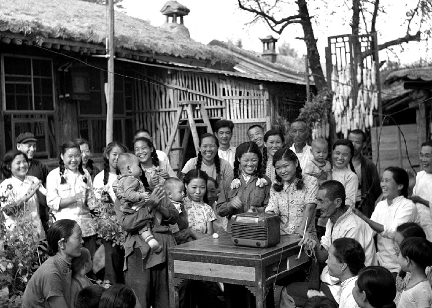 1954年9月15日至28日,第一屆全國人民代表大會第一次會議在北京召開。圖為北京郊區(qū)農民收聽會議實況轉播的情形。