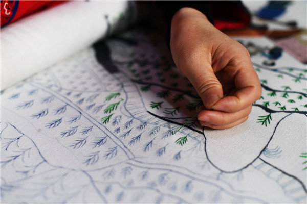 35歲的貧困戶張小容,因?yàn)檎煞蛞馔馐軅荒軇趧?dòng),一個(gè)人扛起了家庭的重?fù)?dān)。經(jīng)過(guò)培訓(xùn),現(xiàn)在她在苗繡工藝品公司上班,下班回家后還要加班繡香囊,每月有近3000元的收入。70多歲的婆婆有一次專門(mén)來(lái)公司看她,回家后再也不讓兒媳婦洗碗,怕傷到兒媳婦做苗繡的雙手。張小容說(shuō),能在照顧家人的同時(shí)增加收入,給了她堅(jiān)持的希望。