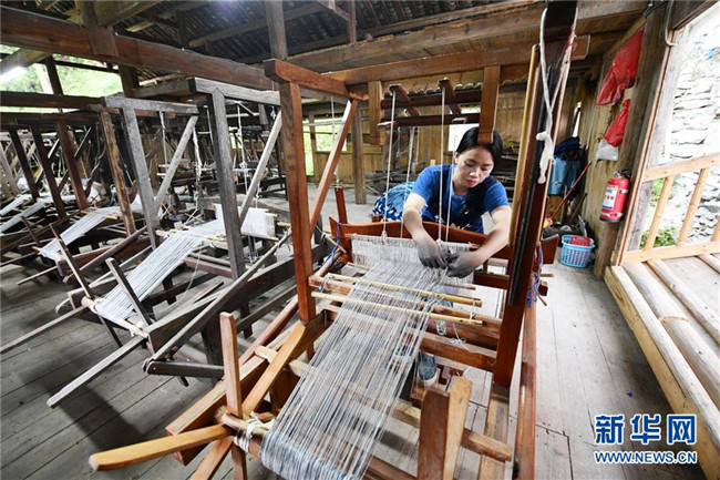 家住貴州省榕江縣栽麻鎮(zhèn)豐登侗寨的“80后”侗族女青年楊成蘭2016年與丈夫放棄城里的工作,選擇回到侗寨創(chuàng)業(yè)。夫妻倆利用兩間廢棄民房改造成廠房,依托家鄉(xiāng)土布的織造工藝,進(jìn)行手工織布、服裝服飾、家居飾品等系列布藝產(chǎn)品的制作和加工,并依托電商平臺(tái)銷售。
