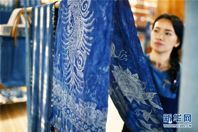 2018年,楊成蘭在村里成立傳統(tǒng)織染合作社,吸引村里及周邊村寨貧困戶入股,帶動(dòng)當(dāng)?shù)刎毨艉痛迕窦尤牒献魃纾瑥氖驴棽?、染布、藍(lán)靛種植等產(chǎn)業(yè),在傳承民族傳統(tǒng)手工技藝的同時(shí),幫助村民脫貧增收。