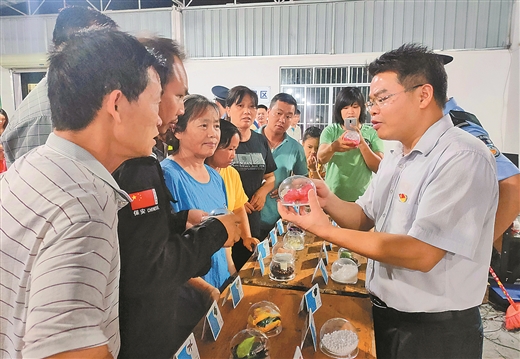 6月1日,上林縣鎮(zhèn)圩瑤族鄉(xiāng)組織黨員干部來到易地扶貧搬遷安置點(diǎn)扶貧車間,向搬遷群眾宣傳禁毒知識(shí),強(qiáng)化他們的禁毒拒毒意識(shí),樹立通過勤勞致富改善生活的理念。 藍(lán) 洲 潘小寶/攝