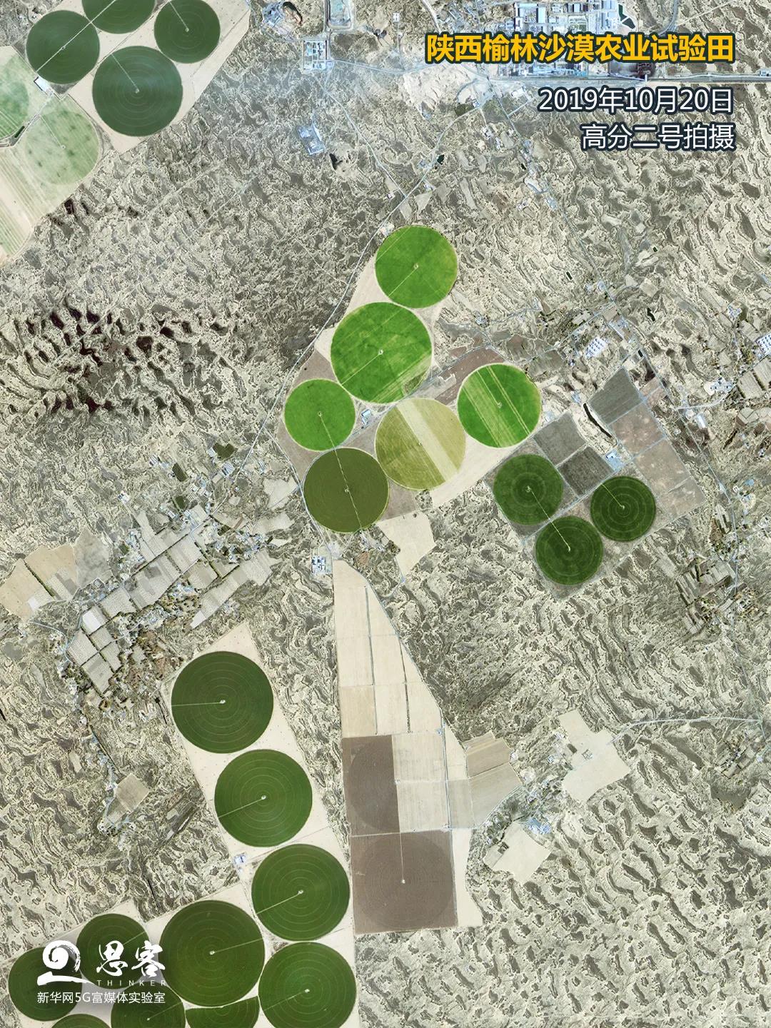 ▲圖為衛(wèi)星拍攝的陜西榆林沙漠農(nóng)業(yè)試驗(yàn)田。衛(wèi)星數(shù)據(jù)來源:高分二號