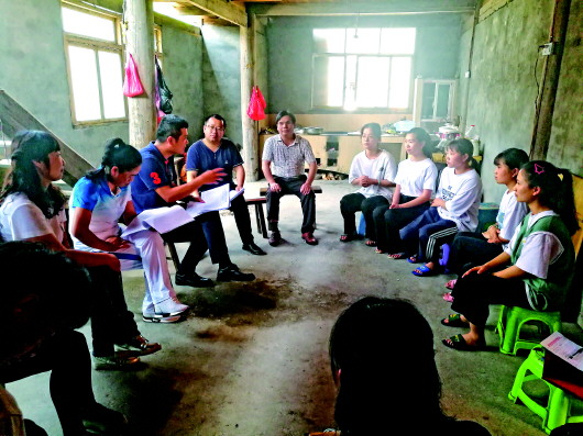 “山鳳凰”關(guān)愛(ài)基金資助管理單位人員與洪州鎮(zhèn)吝洞村在校大學(xué)生交流。受訪者供圖