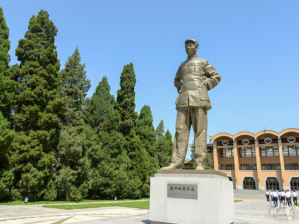 △矗立在禮堂前廣場的毛澤東全身雕像:《我們的老校長》