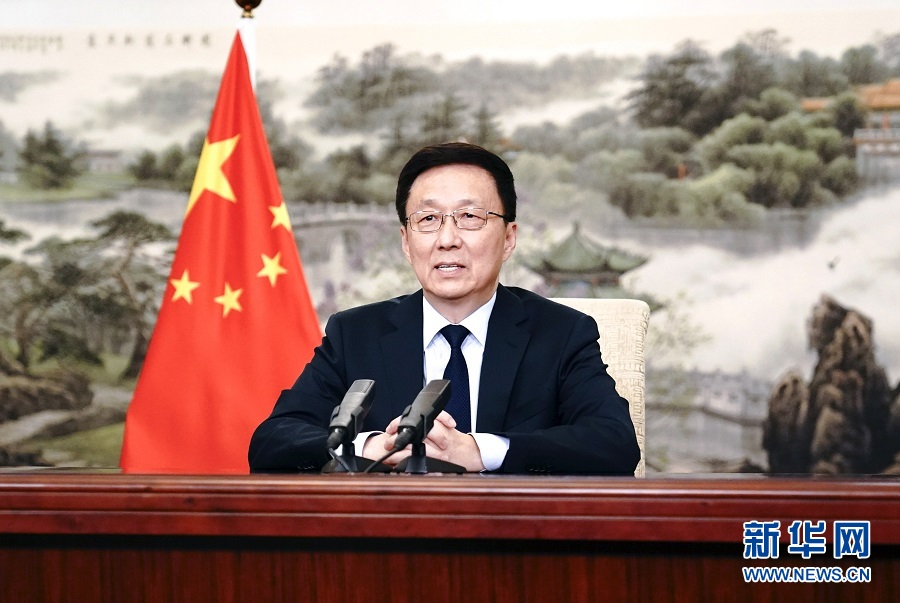 11月10日,博鰲亞洲論壇國(guó)際科技與創(chuàng)新論壇首屆大會(huì)開幕式在澳門舉行。中共中央政治局常委、國(guó)務(wù)院副總理韓正以視頻方式發(fā)表主旨演講。 新華社記者 丁林 攝