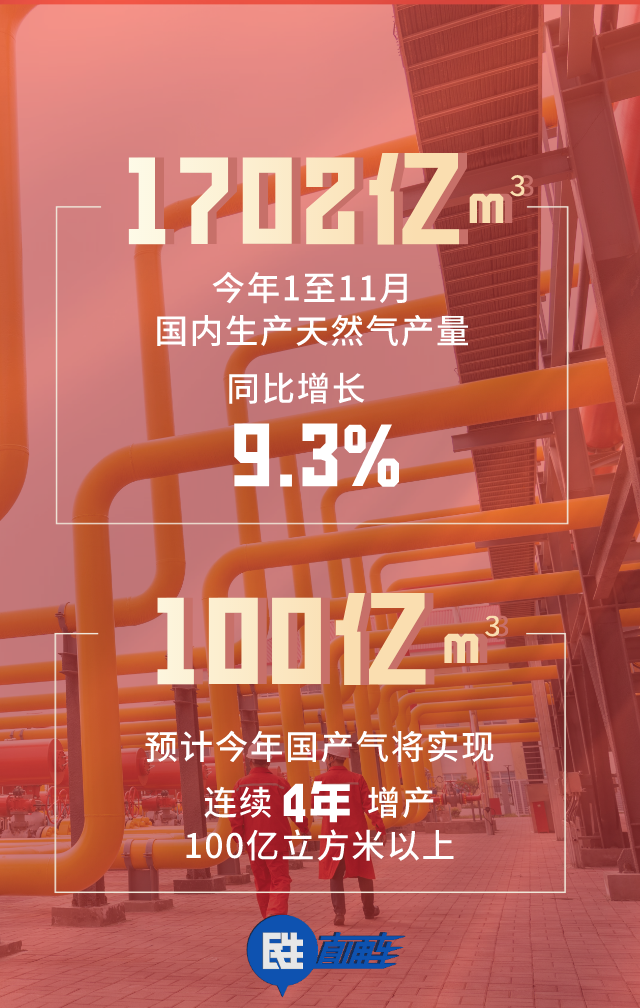 一是國內生產穩(wěn)定。今年1至11月,國內生產天然氣1702億立方米,比去年同期增長9.3%,預計今年國產氣將實現(xiàn)連續(xù)4年增產100億立方米以上,這為穩(wěn)定供氣奠定扎實基礎。