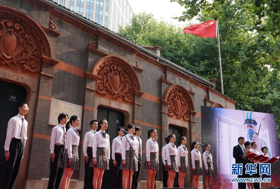 2020年7月1日,“七一”重溫入黨誓詞儀式在中共一大會(huì)址前舉行。這是活動(dòng)現(xiàn)場(chǎng)以詩(shī)朗誦形式講述抗疫一線(xiàn)的黨員故事。新華社記者 劉穎 攝