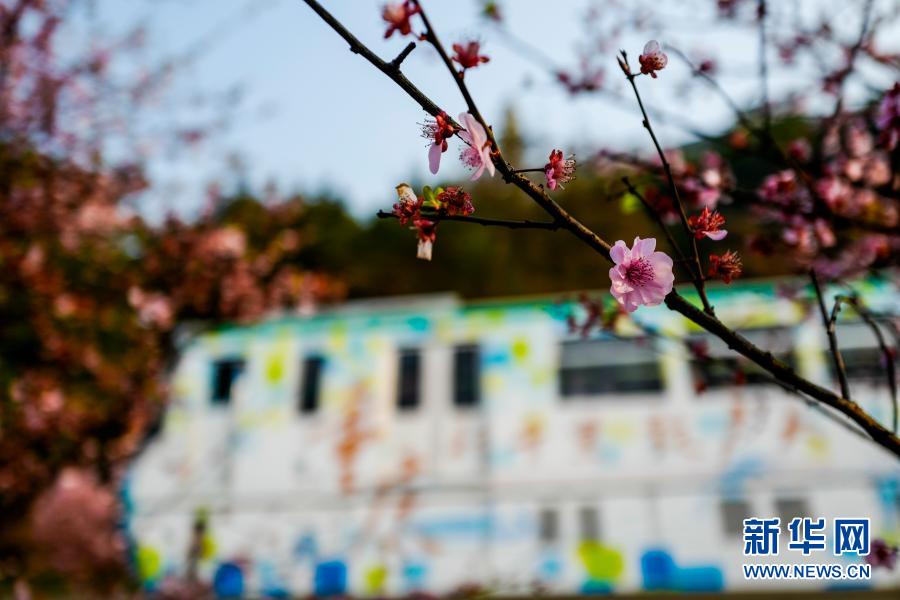 2月23日在重慶軌道交通2號線佛圖關段拍攝的梅花。新華社記者 劉潺 攝