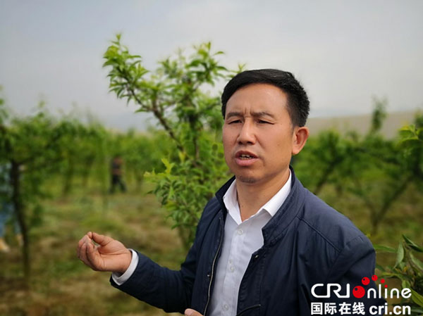 金葉騰種植基地負(fù)責(zé)人葉友誼在果園內(nèi)介紹情況 攝影:黎萌