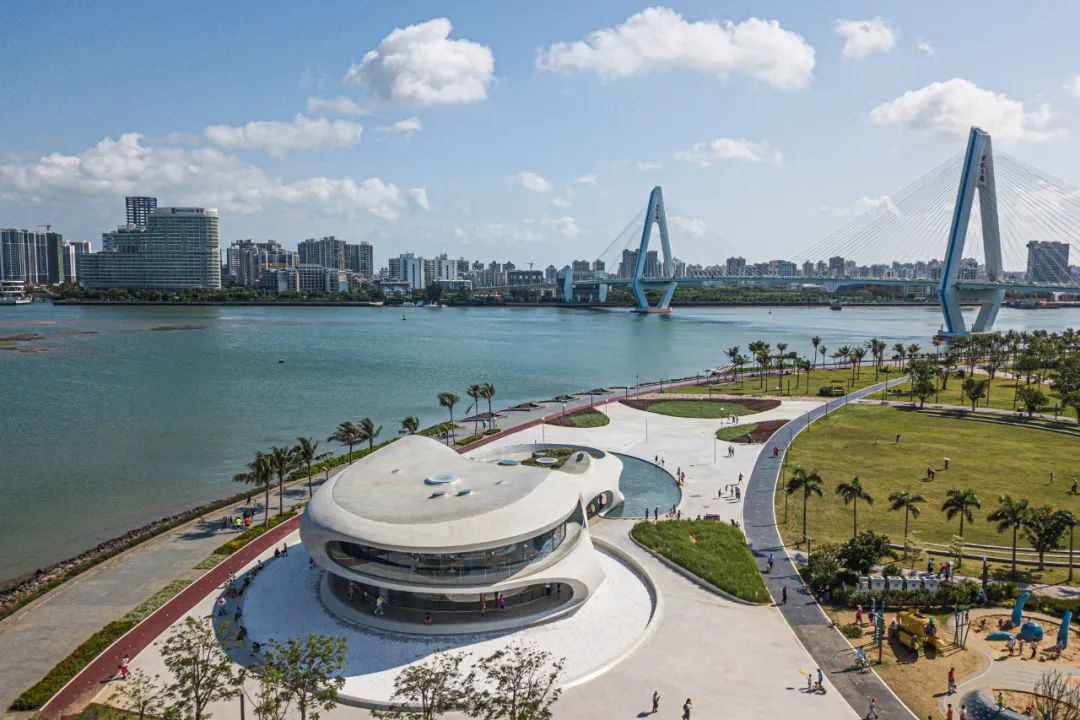 ▲“十四五”開局之年,也是海南全面深化改革開放和加快建設(shè)自由貿(mào)易港關(guān)鍵之年。這是5月3日在??谂臄z的云洞圖書館,遠處是??诘貥?biāo)世紀(jì)大橋(無人機照片)。新華社記者 蒲曉旭 攝