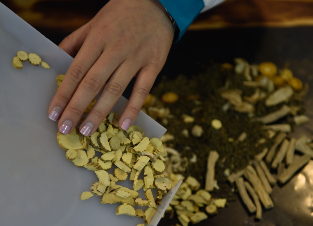▲圖為中醫(yī)藥專業(yè)的學(xué)生在調(diào)配中藥。新華社照片