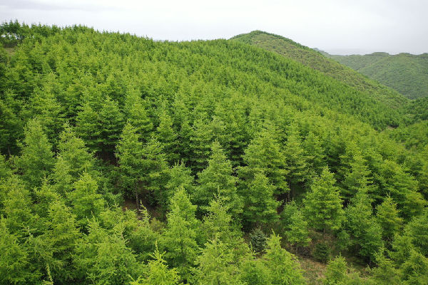寧夏固原市原州區(qū)馬東山林場山坡被綠色覆蓋(6月3日攝)。