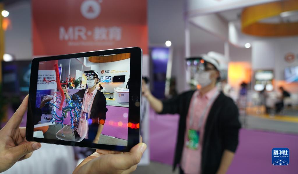 2020年10月19日,2020世界VR產(chǎn)業(yè)大會云峰會在江西省南昌市開幕,這是觀眾在大會VR/AR產(chǎn)品和應(yīng)用展覽會上體驗“MR交互系統(tǒng)”在醫(yī)務(wù)教學上的應(yīng)用。新華社記者 胡晨歡 攝
