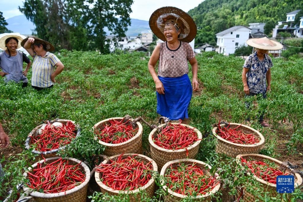 辣椒,這種紅色辣味果實(shí),在以綠色為底色的貴州大山里茁壯成長(zhǎng),用一抹抹艷紅點(diǎn)亮鄉(xiāng)野。