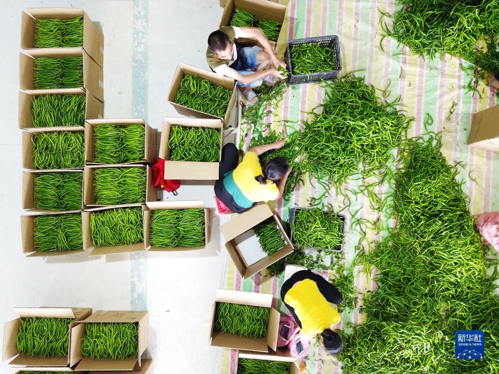 村民在貴陽農(nóng)投集團(tuán)龍崗蔬菜基地將采收好的柿子椒裝箱(7月28日攝)。新華社記者 陶亮 攝