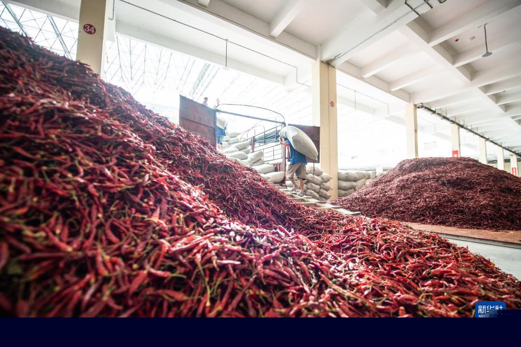 經(jīng)銷商在遵義市新蒲新區(qū)中國辣椒城挑選辣椒(2020年8月18日攝)。新華社記者 陶亮 攝