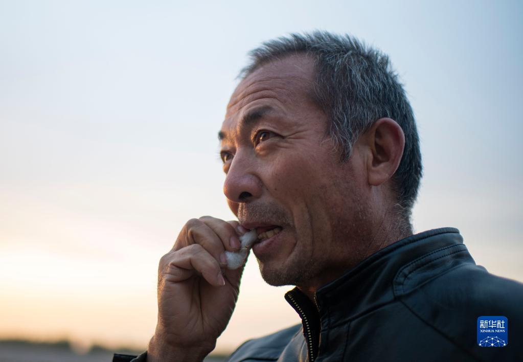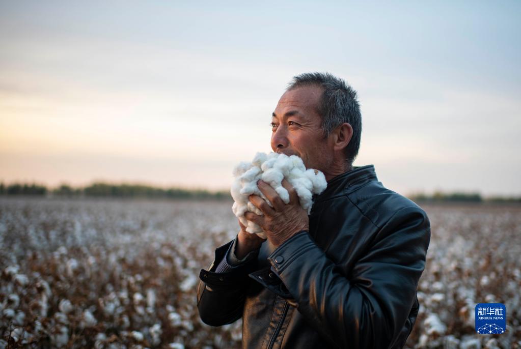 雨過天晴,因擔心棉花過濕而影響采收進度,陸高林急忙來到棉田摘了一朵棉花,放進嘴里咬破棉籽,看棉花被雨水淋濕的程度(10月23日攝)。新華社記者 胡虎虎 攝