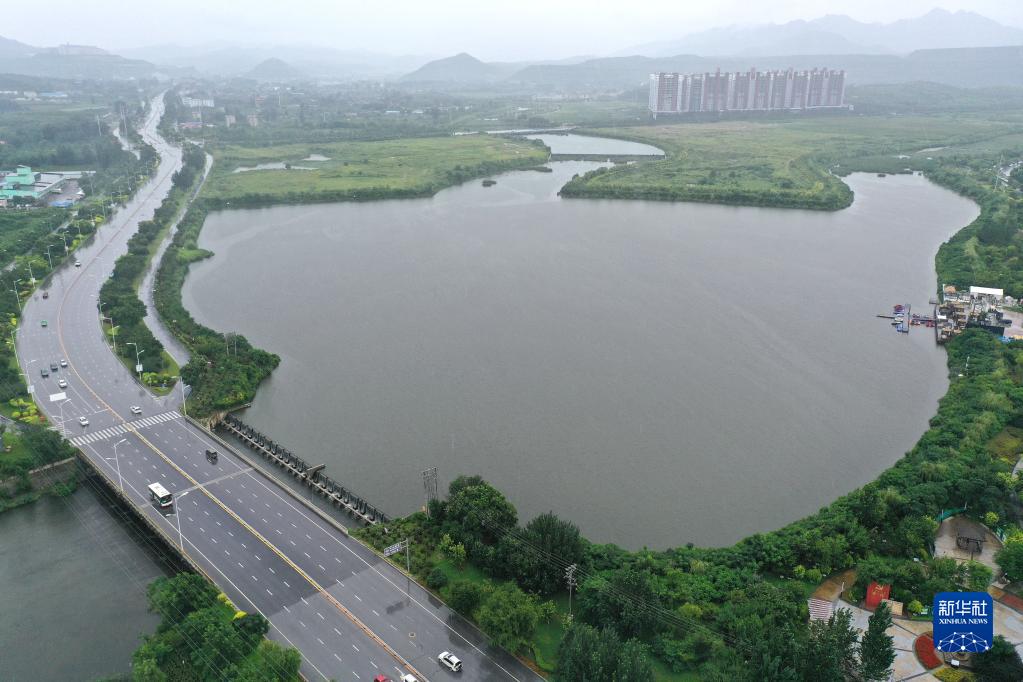 這是遼寧省鞍山市高新區(qū)火炬廣場前的南沙河水域(8月20日攝,無人機(jī)照片)。 新華社記者 姚劍鋒 攝