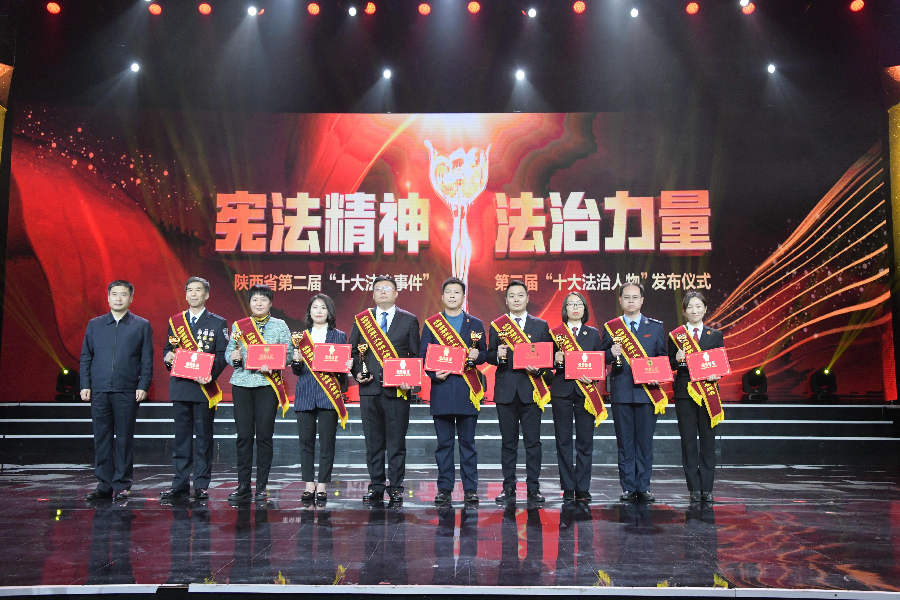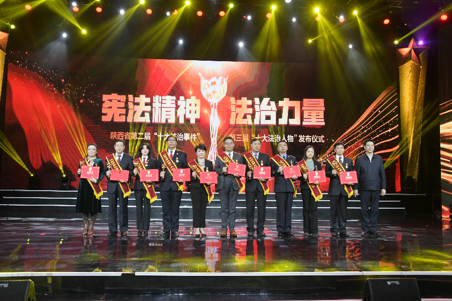 發(fā)布儀式現(xiàn)場播放了“十大法治事件”“十大法治人物”及提名獎的先進事跡短片,揭曉了陜西省第二屆“十大法治事件”、第三屆“十大法治人物”及提名獎獲得者。“全國首創(chuàng)黨委(黨組)書記點評法治工作機制切實夯實‘一把手’履行法治建設(shè)責(zé)任”等10個事件被評為第二屆“十大法治事件”、“陜西出臺自由貿(mào)易試驗區(qū)條例助推自貿(mào)區(qū)高質(zhì)量發(fā)展”等10個事件被評為第二屆“十大法治事件”提名獎,西安交通大學(xué)法學(xué)院二級教授馬治國等10名同志被評為第三屆“十大法治人物”、咸陽市中級人民法院速裁中心主任李春麗等10名同志被評為第三屆“十大法治人物”提名獎。