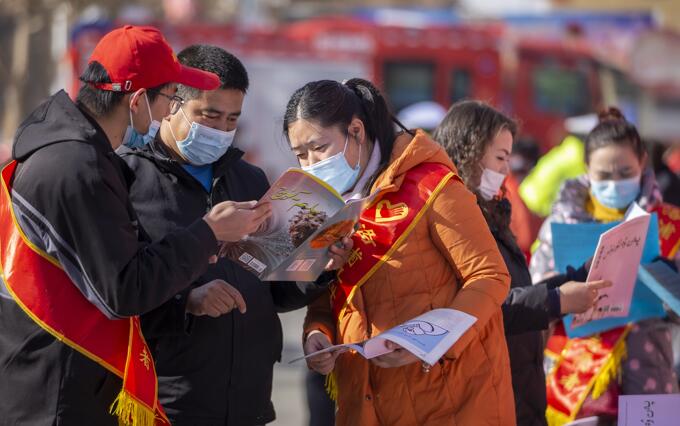 2021年12月4日上午,洛浦縣科技局工作人員在該縣艾德萊斯廣場,正在向當(dāng)?shù)鼐用襁M(jìn)行講解“科普知識”。買買提艾力·艾尼瓦爾攝